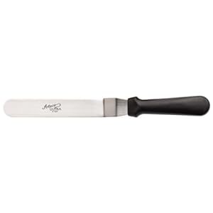 • Professional quality medium sized offset spatula, 7.75- by 1.25-inch blade
