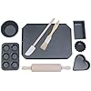 • Includes loaf pan, bear pan, heart pan, mixing bowl, rolling pin, whisk, measuring spoons, measuring cup, pastry wheel, oven mitt and 4 cookie cutters
