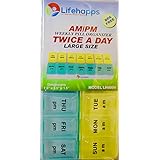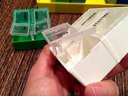 This is the second pill box of this type that I've purchased. I'm currently being treated for Lyme disease and have taken 30+ pills a day (antibiotics and supplements) for the past seven months so these containers have been an organizational God-send for me. I had read a review from a woman who purchased two of them so she could count out two weeks of pills at once. Genius! That's why I ordered a second one - - it makes for a lot less work for me in the long run. For the reviewer who said these aren't big enough for large pills, I'd have to disagree because I take several large pills every day and all 30+ pills fit (with room to spare). Also, another reviewer stated that the tops of each day's container aren't clear, but both sets I've purchased have clear tops so I'm not sure if they reviewed the same product. If you're looking for a handy pill container that's cleverly portable and large enough for LOTS of whatever you're taking, look no further because this is it!