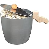 This Wabash Valley Farms Whirley-Pop device has the same important features of thin metal that hold in steam for rapid heat production. The pot will not have to heat up like a heavier pot would. This popper allows the heat to go directly and quickly into the oil and get changed to steam, which can be the most effective for popping the most kernels. The whirley stirring feature is an added bonus that permits you to keep unpopped and partially popped kernels in contact with the highest heat sources (oil and steam) instead of getting trapped by the popped kernels. The ability for the lid to flip up is practical if you end up with a lot of popped corn so it has some place to go and make room for more kernels to get big and fluffy.