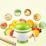 Awesome little contraption! I'm a stickler for homemade baby food--I've never bought a jar (though I used baby food pouches on a very long airplane trip once). This little thing makes it so easy! And it's really easy to clean (with a brush). We use it 4 times a day to feed our 11-month-old, whose meals typically comprise a finger food appetizer, ground up entrees, and dessert of chopped up and pureed fruits. On a typical day, breakfast is a handful of blueberries, three or four blackberries, two strawberries, and 1/2 a banana milled together with three tablespoons of oatmeal cereal. It takes 5 minutes and the texture beats hand blending out of the water. Lunch and dinner entrees would be a seasonal veggies, protein, and pasta, rice, or quinoa, and other grains. Examples are roasted sweet potato milled up with some garlic, cumin, and millet or barley, or boiled milled peas and quinoa, or star pasta (ground in the mill) and homemade pureed pasta sauce. The mill does an awesome job with chicken, too--and I've tried it with pork sausage and lamb. Works beautifully. (Whoever said the food needs to be cooked soft is not using it properly. You've got to put some pressure on it, but churn slowly.Most everything we grind is raw) Desserts are whatever's fresh and in season : Mangoes, papaya, kiwi, peaches, nectarines, berries, pears, plums are fruits that stand up well to milling. (Mine doesn't leak--maybe white little collar hasn't been replaced properly? I can see how that can be annoying, though.)This, we pair with cut up grapes, and berries, or little apple pieces. I particularly love the Munchkin mill on trips--we just spent a month in Africa, and getting our baby's breakfast, dinner, and lunch in restaurants was 100 easier and better than giving him jarred stuff.Read more ›