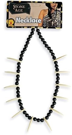Perfect if you are looking for a caveman/woman look. Plastic beads/teeth on stretch cord. Long enough to fit a mans neck.