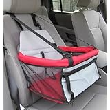 One word of caution: you probably should NOT put this in the back seat of your vehicle UNLESS you have a passenger who could help out in case of a poorly-timed, enthusiastic leap from the basket! There is a harness clip to keep the dog safe in case of sudden turns or stops, but if your dog jumps out, he/she will dangle (or worse) whick would be very dangerous while you are driving! Vera tried to jump out within the first five minutes, but luckily it was in the driveway. It only took once for her to learn her lesson, but I was too worried for the rest of our drive to really be able to focus on the road instead of her in the backseat: dangerous! Keep the pet seat installed up front with you, if you are in the car alone.
