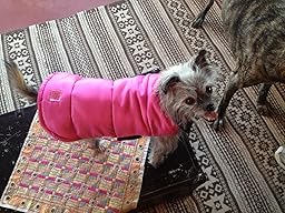 This coat for my little Rat Terrier (Rat Terror) has worked well. I can say he loved the fact that the coat also had the velcro and didn't chafe like some dog coats. It kept him warm while working outside in the yard. I did find that this coat is not dog chew proof though. He found the coat and decided to test its derability out by chewing a hole straight through to the other side. Needless to say, fixed the coat with Gaff Tape and it seems to work just fine.