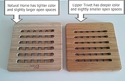 In comparing the two square trivets from both brands, I found that the only really noticeable difference was the color. The Lipper trivet is a deeper color and I have attached a picture. Other than that, both are the same thickness, though the space between the lattice is 3/8 inch on the Lipper and 4/8 inch on the Natural Home, making the Natural Home trivet hole a bit larger. I find the bamboo trivets to be more useful for my needs and appreciate the fact that the wood looks blends nicely in any environment.