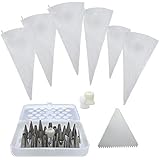 One reviewer commented that the bag included in this set is ridiculously small; so it is, but that's easily solved. Peel it off the coupling, throw it away, and use a gallon ziploc with the corner cut off instead. Save yourself the trouble of cleaning it, too. The tips are easy to use, and there's a nice variety for getting started with decorating - NB, though, something I didn't realize (as a novice myself): decorating tips come in two sizes, and these are the smaller size, so you won't get large swirls/flourishes out of them, and don't plan to cover a whole cake this way. I found decorator tips and couplings in both sizes and all shapes available singly at my local cooking store, and they're cheap. You might want to check out that option if you have it in your town.
