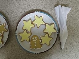 I've uploaded some photos of my work (yellow stars and a gingerbread man). Please keep in mind I'm a complete newbie. This was the very first time I baked cookies and the first time I ever held a piping bag! I'm sure professionals would outgrow this bag asap. I actually bought a Wilton 16 Bag before seeing this Norpro. The Wilton is a much nicer bag; feels thicker and sturdier. But the Wilton is a bag only. I also had to buy couplers for it and an Ateco piping tip set. Total price was about $25. Oh and the piping set had two different size tips circumferences so the couplers only worked on half of them. I would have had to buy bigger couplers to use the other half of tips. Anyway, it was quickly becoming an expensive hobby lol