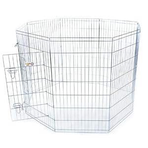 I bought this pen for our 2 American Bulldogs to use as a pen while we are RV Camping. It is well made and sturdy. I find it a bit cramped for 2 100+ pound dogs to wrestle in, so I ordered a second one so I can double the size. It is simple to fold up and set up.