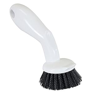 I had a Quickie Stovetop Brush (with the brand marked on the handle) for years and it was the best brush I ever had for scrubbing. The bristles were stiff and simply wore down over the years instead of bending or splaying and becoming useless. I'm admittedly something of a fanatic about letting the brush do the scrubbing with the tips of the bristles rather than pushing down on the brush thinking that one is "scrubbing" harder when in fact all one is doing is spreading the bristles so they can't do their job.
