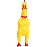 Our 80 lb lab/shepherd mix loves rubber chickens that make squeeling noises. While the sound can certainly be quite annoying to any human, we figured we'd offer our dog a little Xmas cheer. Did not disappoint - he absolutely loves this toy. Keep in mind it is not very durable so you can't play tug of war w/ the dog or it will rip apart, but for the dog's own self-pleasure it does the job.