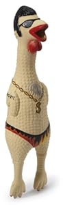 I have purchased many rubber chickens for my dog. Several different brands from several different locations. Earl managed to outlast them all. It took 8 months before his noise maker finally broke which is amazing. But the fact that he is still in one piece right now is the most amazing part. My dog is destructive. She loves Earl even though he has no noise anymore and she has yet to chew off his foot or face. Today I will be ordering some of his family members.