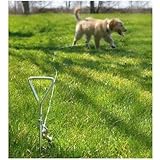 Best dog tie I have ever had. It hides well in the garden or grass and shows only the tiny metal loop at the top. I care about it being hidden because I am a gardener/yard party & also because my kids are soccer players that don't need a tripping hazard in the lawn where they practice a lot. We have mowed over the tie we installed in the grass and didn't have any issues with clipping the grass right over it. If you ever need to get rid of the tie some metal clippers or jewelry clippers would clip it off at soil level but it is too sturdy for my bulldogs to chew through. I have tied two Bulldogs at one time to it and it did not budge at all. I love that it is so inconspicuous and easy to insert into the ground and use. The best dog tie I have found! Highly recommend, in fact I bought a few so that I had a choice of where to tie the dogs depending on our activity in the yard.