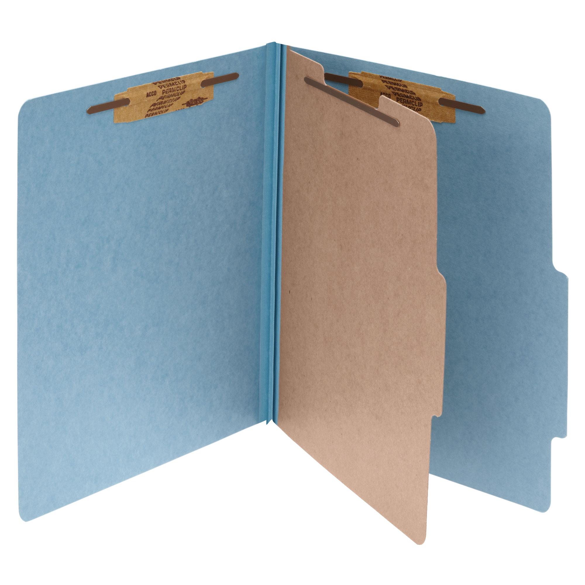 ACCO Classification Folders with PermClip Fasteners, Pressboard, 4-Part, Letter, Blue, Box of 10 (15024)