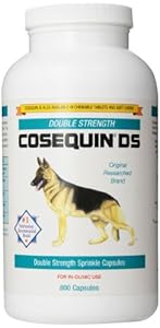Anyway, she's been on Cosequin DS for a little over a month and she is doing better. I'm sure a lot of things are assisting the recovery, but I am happy with the effects of this supplement. My dog is having an easier time getting up and down and is putting more weight on her legs. (Fingers crossed we can start doggie physical therapy soon.)