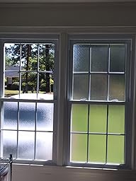 I can not be certain for which texture film other reviews have been written. This review is for Texture 12; a sort of rippled/pebbled pattern. I very much like this window film. It provides excellent privacy, much more than I had expected. I have just finished installing it on my patio door. For looking in from the outside, it might as well be opaque. Excellent privacy and security while still allowing ample light inside. This is at mid-day, with all the lights on inside. I am eager to see how it will be looking in when it is dark outside. This is just for curiosity, as at night we draw the blinds. The one important caveat I have to add concerns installation. The instructions tell you to not let the paper backing get wet, but I do not think that they emphasize this enough nor do they inform you of the consequences. It was hot, and I perspired while I was trimming the door size film to fit. A few drops of perspiration fell from my brow and onto the backing paper. Wherever the backing got wet, it pretty much disintegrated and bonded to the window film. Seriously. It wasn't just a simply matter to remove it either. I was able to get most of it removed via judicious use of a non-stick safe dish scrubber. It took work. Seriously. This isn't just a matter of ease of removing a dry backing vs wet. Once the paper is moistened, the glossy surface that faces the film becomes glued to the film. Given that, I do wish that they had waterproofed the backing. So, just watch it if it is hot or you perspire easily. The little squeegee provided with the film was surprisingly effective. I did not need to use another, although I had others at hand. Post script: I purchased this in April 2014 for $29.99. I just now installed it in August 2014 because we had the patio doors replaced.Read more ›