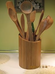 I ordered 2 of these bamboo utensil holders, thinking that there was no way that one was going to handle all of the bamboo utensils I've been buying. Well, the second one is still in the box, waiting for a chance to get in the kitchen. I have 9 assorted spoons, spatulas, a ladel and a basting brush in the holder currently, and there is plenty of room for several more.