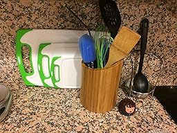 I love it! This bamboo utensil holder is well made and is good quality. It even smells nice. It's large which was what I was looking for. Because after all who only has a couple of utensils? I love the angled cut which gives it a nice unique look. It's not too heavy or too light. I'm very happy with my purchase and would recommend.