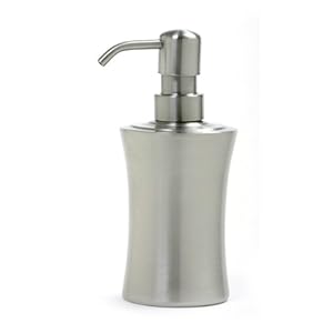 This is easy to grab, not too big around, and quite stable when pumping while sitting on the counter. The 18/10 quality stainless should guarantee no corrosion from the liquid soaps we buy in quantity at the warehouse club.