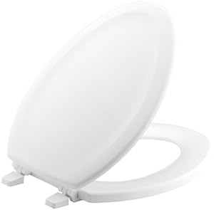 This item: KOHLER K-4647-0 Stonewood Molded-Wood with Color-Matched Plastic Hinges Elongated Toilet Seat, White