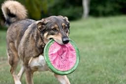 Another frisbee that is almost as good in terms of flight and softness on the teeth is the Ruffwear yellow ring, but that one is not as durable and way more expensive, so it does not get a lot of use, just figured I'd let people know who are trying to decide between them.