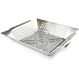 Best grill pan ever. Raised edges keep everything in the pan. Small openings in the bottom of the pan makes certain that nothing falls through. Big handles make it easy to move around the grill. I've been grilling for 37 years and this is the best grill pan I have ever used.
