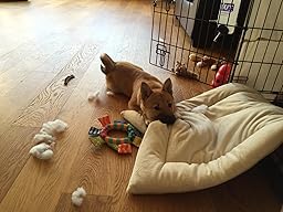 So I purchased this because it looked ultra cute and plush for my new doggie. Overall I'm satisfied but I doubt I would buy it again. The mat itself shrunk after one wash which I wasn't happy with and it's not a plush as it looks. The padded sidings are nice however a bit difficult to take on and off. I love the cover! If this item was maybe $10-20 cheaper I would be super impressed but for $60 plus I would expect something a little better when it comes to the mat itself. I mean I did buy it for his comfort...