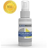 The product works well and the price is good. It even smells good (unlike acetone or other solvent based accelerator). The ONLY thing that kept me from rating it 5 stars is that the spray bottle actually sprays too much and two wide of a spray pattern. I just have to wipe off excess (wasted) every time.