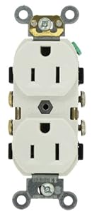 • Leviton CR15-W 15-Amp, 125-Volt, Narrow Body Duplex Receptacle, Straight Blade, Commercial Grade, Self Grounding, Side Wired, White