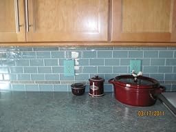 glass tiles of our kitchen back splash.
