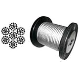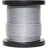 Loos Galvanized Steel Wire Rope, Vinyl Coated, 7x19 Strand Core, Red, 1/8" Bare OD, 3/16" Coated OD, 50' Length, 2000 lbs Breaking Strength