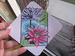 This ink is so useful for so many art projects. I've been using it with stamps on greeting cards, ATC's, coasters, and watercolor papers. After it dries, I use watercolor pencils, gelatos, and colored pencils over what I stamped. (See my photo with watercolor pencils on a coaster, and on cards).