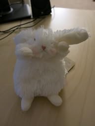 Update 2/25/16: I bought this bunny for myself because it was just so cute. It sits on my shelf above the computer. I put it through the wash a few times to clean out any dust that might have gotten on it, but you could just shake it out if you prefer. It isn't as soft as it was before the wash, but that is to be expected. It still looks good and the pink on the cheeks did not come off. I still like it.