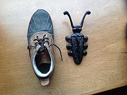 I like this. I'm in the Army and wear boots daily. This thing is a Godsend some days. Unlace my boots, put one foot on the beetle's back and stick the other heel between the antennae, pull and - like magic - the boot comes off. Switch and repeat. I can leave them on my porch and life is good. There's a small hole in the beetle's butt (you can make it out in this picture). I think this is to fasten the beetle to a wooden floor or plank to keep it from getting kicked around, and although I haven't used it for that I see the utility of it. An olde design that still works today.