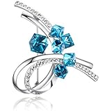 • GULICX Royal Brooch Art Deco Silver Plated Base Art Deco Blue Cubic Zirconia Sapphire Color Pin for Women