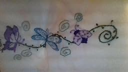 I wish there were Queen sized sheets to go with this. I didn't use the same colors, opting to keep all of the butterflies and bugs in lavenders,purple and pink along with the blues and to make those blues a bit on the green side, almost a turquoise as well. I used a dark muted green for the center swirl and French knots with a very light shade of the same green family for the outer swirls. To be able to tell the pillow cases apart, I changed the color of some of the French knots on the butterflies and bugs on the second case. That makes them His and Hers without the difference being terribly obvious to a casual observer, but quite noticeable to the people using them. I really like the way today's world is one in which everything doesn't have to match esactly to be a set or to be considered "right"!