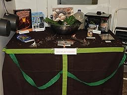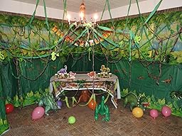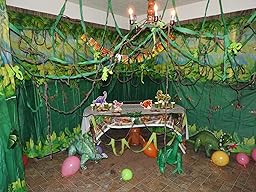 I used this as a part of the jungle backdrop dinosaur birthday. The light green was the moss stuff hanging on the vines. Also an accent to the birthday cake table and the dino play center table on the brown table cloth.