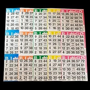 Just like the sheets used in bingo halls, but instead of six cards on one sheet like the Vegas packs or booklets, there are 3. The first sheet is blue with 3 "cards", when that game is over, tear the blue sheet off, then the next sheet is red with 3 cards, and so on. Each pack has 5 different colored sheets as shown in the photo. So you can play 5 games per pack. With 100 packs, that's 500 games! It'll last forever, or at least a very long time depending on how much you play. Great for large parties, and an excellent bargain.