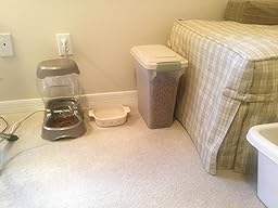 • Injection-molded plastic container stores up to 12 pounds of your favorite dry pet food, treats, or rawhide