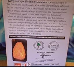 The first time I encountered a salt lamp was in a local day spa that features therapeutic massages. The warm, glowing product captured my interest and curiosity. That particular salt lamp at the spa was big, though,--a sphere kind of like something from a Harry Potter movie--LOL! The salt sphere was costing over $100, so it was beyond my budget at the time. My curiosity led to me Amazon to see if I could find a smaller, more affordable one. To my joy, I found that Amazon had various opportunities for a product like this, but to my worry, there seemed to be some negativity / problems about certain groups of products. I read all the mixed reviews from various products, including the horror stories where people had received defective, damaged lamps and beat up boxes. After landing on this product's page and mulling it over for a day or two, I decided to try the product...for better or worse. I clicked checkout, and I didn't set my expectations too high. So, the day came, and the product arrived in a nice, clean sturdy outer box with plastic air bags as internal cushions. The product was heavy, but its personal box inside the shipping box was in pristine condition---no bangs, dents, scraps, etc. My heart lifted! So, I carefully opened that outer box and encountered a white innerbox, then at last, the product in carefully arranged, secure bubble wrap. It was quite obviously new---not some display product that had been in someone's shop and stuffed in a box at the last minute for shipping. I did NOT see any broken pieces, shards, dust, or broken bulb! (The bulb was included; some reviewers had stated they had received the product with no bulb.) Also, one of the best things for me: no upfront assembly was required! :) Once the lamp was free from packing materials, it was ready to go!Read more ›