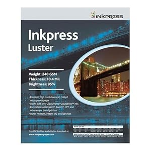 Inkpress Luster, Single Sided Inkjet Paper, 240gsm, 10.4 mil., 17x22", 20 Sheets