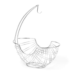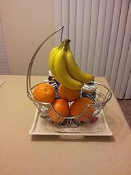 I received this for my birthday in April, and absolutely love it. The metal is bright and shiny, and the basket holds about 10-12 pieces of fruit in addition to the bananas. I highly recommend this product if you are looking for something classy and stylish for your fruit.