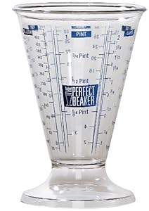 My only complaint is that there are perhaps too many measuring scales on one flask: Pints, cups, fluid ounces, tablespoons, teaspoons, and mm/cc (which is great to have if you have both European and US recipes or cookbooks). They could eliminate the pint scale easily and made the others easier to read by spacing the remaining scales apart.
