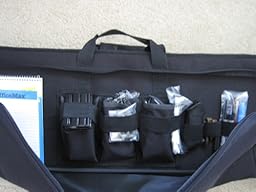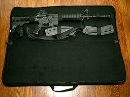 Wow, now this is class! Great construction, easy to understand, easy to use. Fits my M4 w/16" barrel and fully extended telescoping butt perfectly. Plenty of support straps which are easy to move around, swap or remove. Holds the rifle nice and tight in place. The additional front pouch includes 3 mag holders and multiple accessory "slots", as well as a built in pistol holster with quick-release button and snap-buckle strap. I was able to fit my M9A1 in the holster, 3 additional M4 30round clips in the mag holders and an additional M9A1 mag in an "accessory" slot, with plenty of slots to spare. The padding is perfect; not too bulky but certainly enough to sustain moderate shocks (I mean really, are you planning on falling down a cliff?). The bag itself is relatively nondescript save a spot for paper nameplate and UTG in small letters on the front. The backpack straps are nicely padded and useful, especially if you're carrying dual rifles. I would go as far as to say this beats out most hard cases for managability, utility and appearance. If you're on the line about whether to get this, take it from someone that owns many guns, all in hard cases; this was a great investment and will work wonderfully for days at the range or storage. Well worth the money.