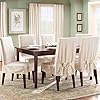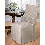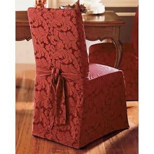 The Brown Scroll Dining Room Chair Covers by Sure Fit are great for the price! I shopped the internet and local retailers and saw upwards of $100+ for one cover! On a whim, I ordered 4 for my dining room Parson's chairs thru Amazon and were Amazed! These fit the chair snugly and are terrific look. I ironed and starched them before using them and they turned out beautifully! They make such a difference and I have had family and friends comment how they look out of a interior design magazine!