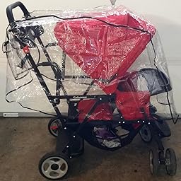 I couldn't find a decent rain cover for my Baby Trend Sit-N-Stand tandem stroller. Someone here reviewed that this product fit. Well... yes, it fits, but barely coveres my older child who sits on the back of the stroller. And she is not exceptionally tall but the cover has to sort of rest on her head, since this stroller had no canopy for that part. Her legs are totally exposed to rain and she complained about it. Better than nothing I guess, but make sure you have a stroller with TWO canopies and even then I'm not sure it will be long enough all around.