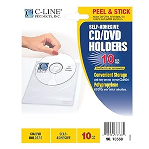 C-Line Self-Adhesive CD Holder, 5.33 x 5.66 Inches, Clear, 10 per Pack (70568)