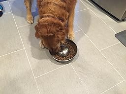 I really like the bowl, I bought 2. "Large" is not a good description, should be "Super Giant." I bought this for a 95 pound dog and the "small" for a 10 pound dog. The "small" is plenty big for the 95 pound dog. The "large" is big enough for a horse, it's absolutely huge.