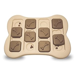 We own several of the Nina Ottosson dog toys, and our dogs love playing with all of them. The Dog Brick is a good toy for dogs with a little experience with puzzle toys; start with the Dog Spinny or Dog Magic if your dog is new to these types of toys. The Dog Brick holds treats in round- and bone-shaped depressions covered with slider blocks and bone-shaped cups. The dog has to remove the cups and slide the blocks to get to the treats.