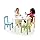 • Table measures 26-inch wide by 22-inch deep by 19-inch high; 10-by-10-inch chairs stand 22-inch high overall
