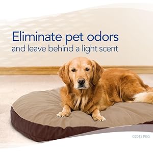 ...this one actually works! I feel a little silly writing this review because it's *just* Febreze after all but this one really does work, guys! I have an old English Bulldog who, while I love him to pieces, has that "old dog smell" no matter how many times I bathe him. His orthopedic foam beds start to stink a couple of days after washing the covers. Forget about the actual foam part. Since you can't wash that part I thought I was stuck with a year's worth of dog stink embedded in it. I had tried other Febreze products in the past and they just succeeded in giving me a lavender (or whatever) smelling stinky dog bed. But not this particular one. I truly believe this ACTUALLY removes the smells! I dampened the foam bed insert with it before I went to bed and the next morning I woke up and smelled the bed and all it had was a faint fresh smell to it. Don't get me wrong, it didn't smell brand new. But it's no longer the first thing you smell when you enter the room! This product is staying on my "must have for pets" list.